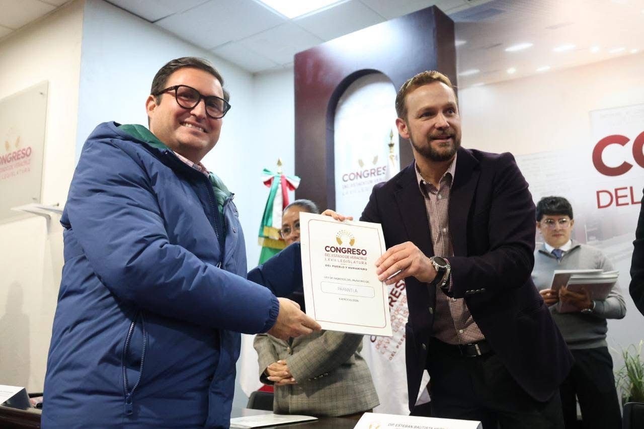 PAPANTLA, VER.- El presidente municipal, Gonzalo Flores Castellanos, realizó una visita oficial al Congreso del Estado, donde le fue entregada la Ley de Ingresos correspondiente al ejercicio fiscal 2026, documento fundamental para la planeación financiera del municipio durante el próximo año.