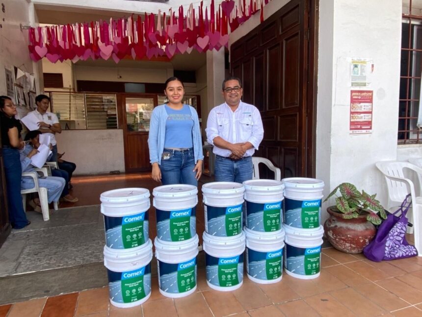 GUTIÉRREZ ZAMORA, VER.- El gobierno municipal informó que, a nombre del alcalde Carlos Raúl Silva Vega, se recibió la donación de 10 cubetas de pintura por parte de la empresa COMEX, a través de su sucursal “El Pino” en este municipio.