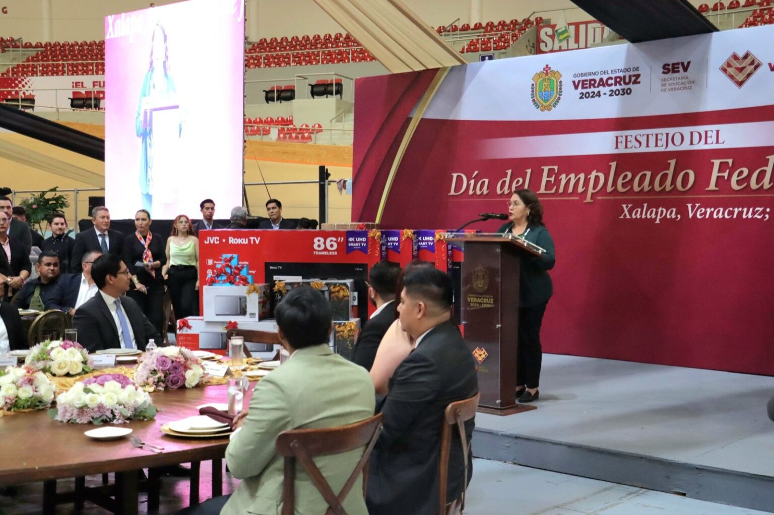 En el marco de la conmemoración del Día del Empleado Administrativo Federal, la Secretaría de Educación de Veracruz (SEV) celebró a mil 302 trabajadores de Apoyo y Asistencia a la Educación con una cena gala.
