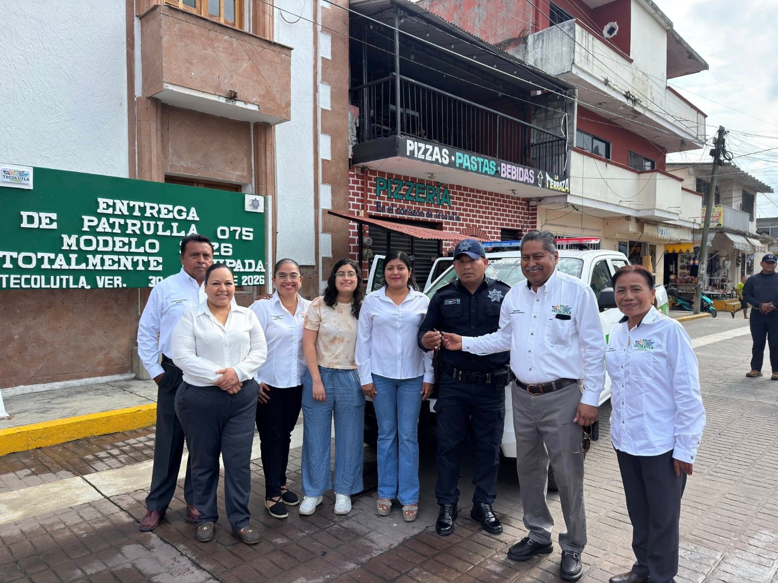 TECOLUTLA, VER.- Durante un acto cívico, el presidente municipal, Wenceslao Santiago Castro, realizó la entrega de una nueva unidad policiaca, identificada como patrulla 075, modelo 2026 y totalmente equipada.