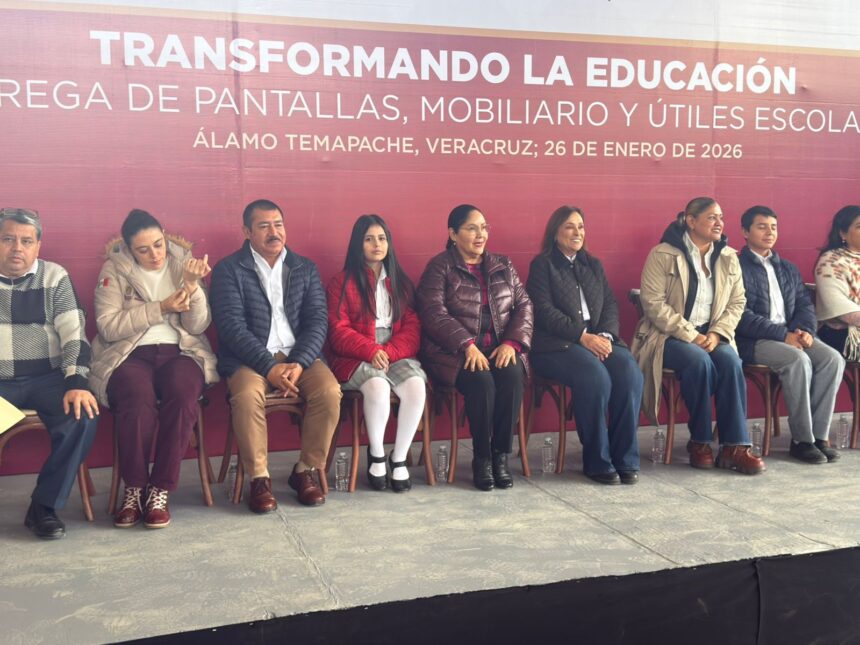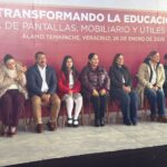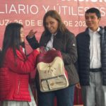 Durante la entrega de pantallas, mobiliario y útiles escolares a alumnas y alumnos de nivel secundaria, realizada en la Escuela Secundaria General “18 de Marzo”, la mandataria estatal subrayó que existe una coordinación permanente con el Ayuntamiento para atender los retos que dejó el paso de las lluvias e inundaciones, y avanzar en la reconstrucción integral del municipio.