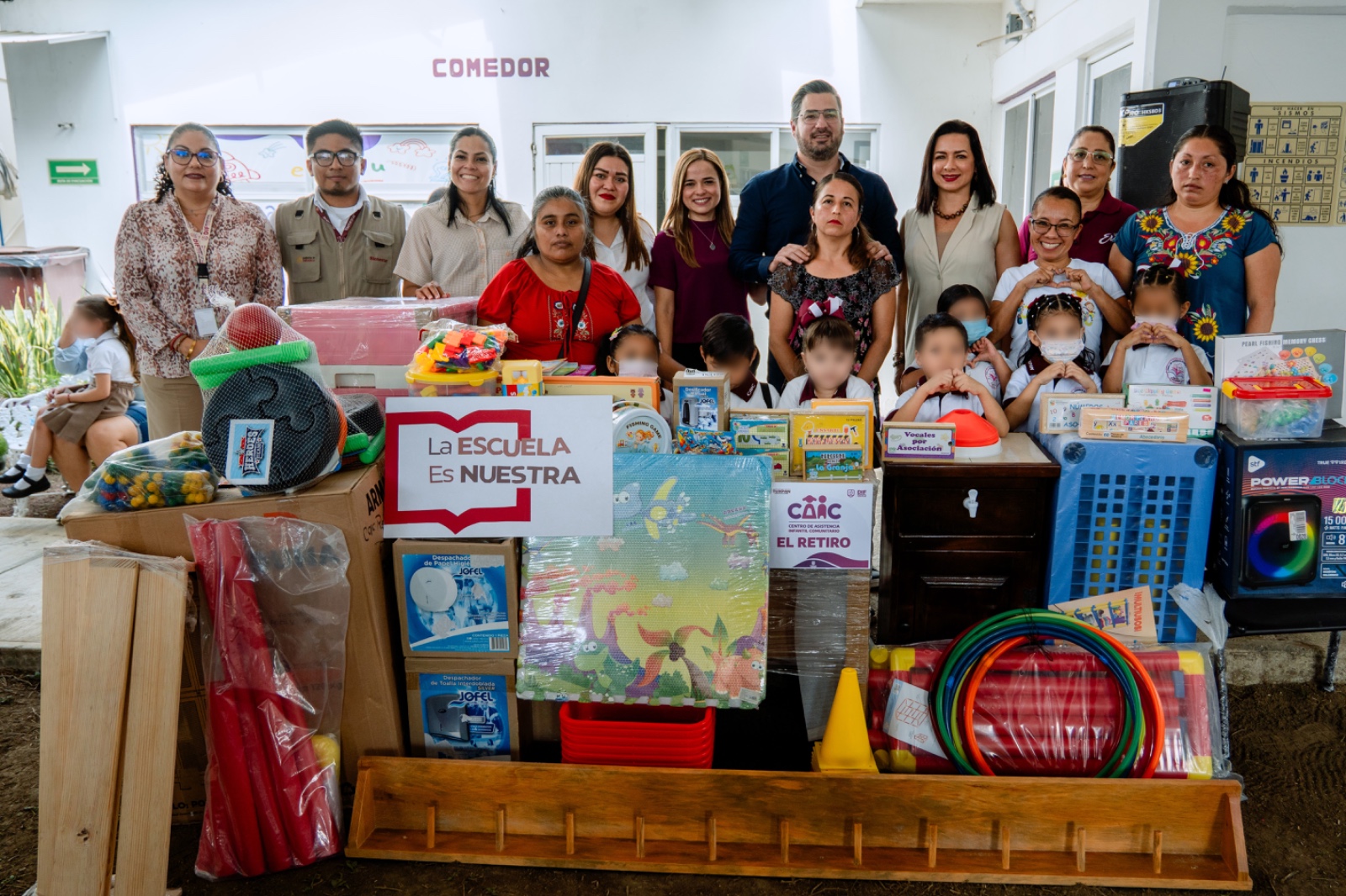 Durante el evento se realizó la entrega del mobiliario y equipamiento adquirido mediante este programa para los CAIC DIF, Villamar, Baltazar, Ojite, Sabanillas y El Retiro, con una inversión de 200 mil pesos, recurso administrado y aplicado a través del Comité Escolar de Administración Participativa, con el objetivo de fortalecer las condiciones en que niñas y niños reciben atención y educación en su primera etapa de desarrollo.