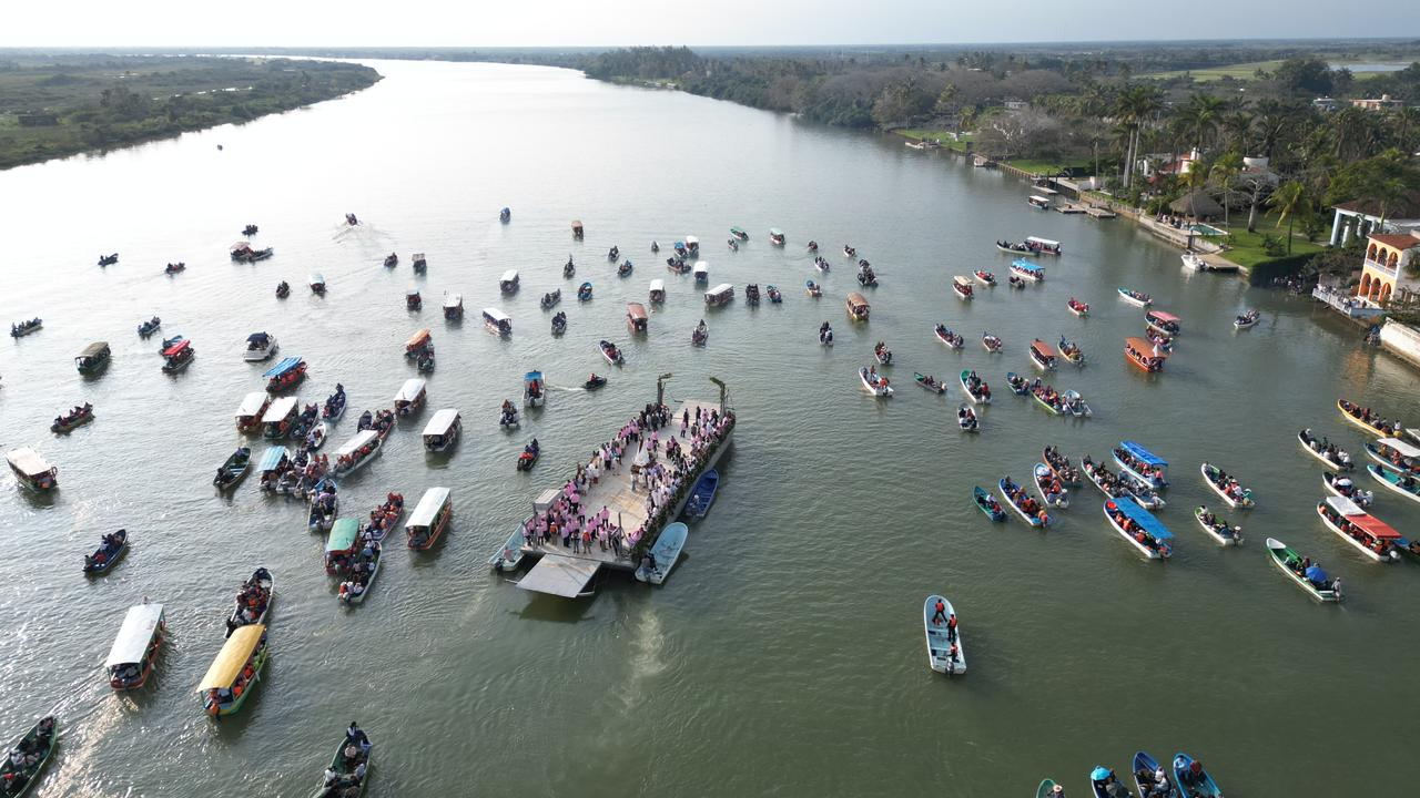 La gobernadora Rocío Nahle García presenció, desde el Centro Cultural del Sotavento, el tradicional recorrido de la Virgen de La Candelaria por el río de Las Mariposas, uno de los rituales religiosos y culturales más emblemáticos del estado y símbolo vivo de la identidad tlacotalpeña.