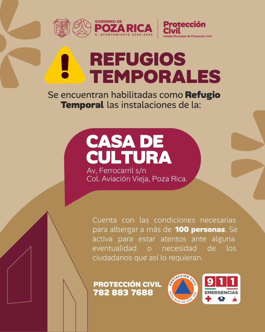Se activa el refugio temporal en Casa de Cultura Poza Rica.