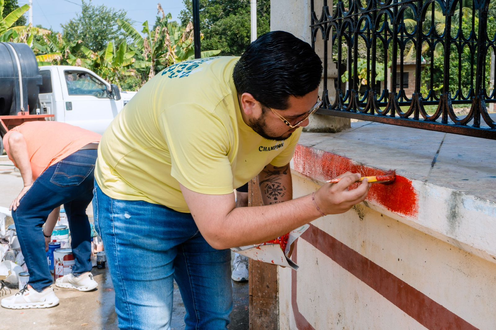 Tuxpan, Veracruz; 21 de febrero de 2026.- Este sábado, el alcalde Daniel Cortina Martínez, acompañado por personal del Ayuntamiento, acudió a la comunidad de Chomotla para realizar una jornada de trabajo enfocada en la rehabilitación del parque de la localidad.