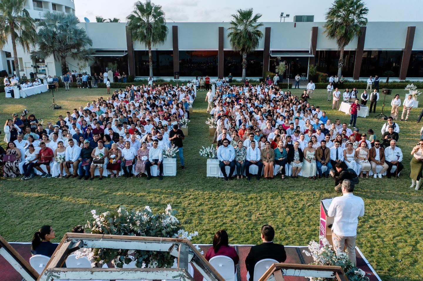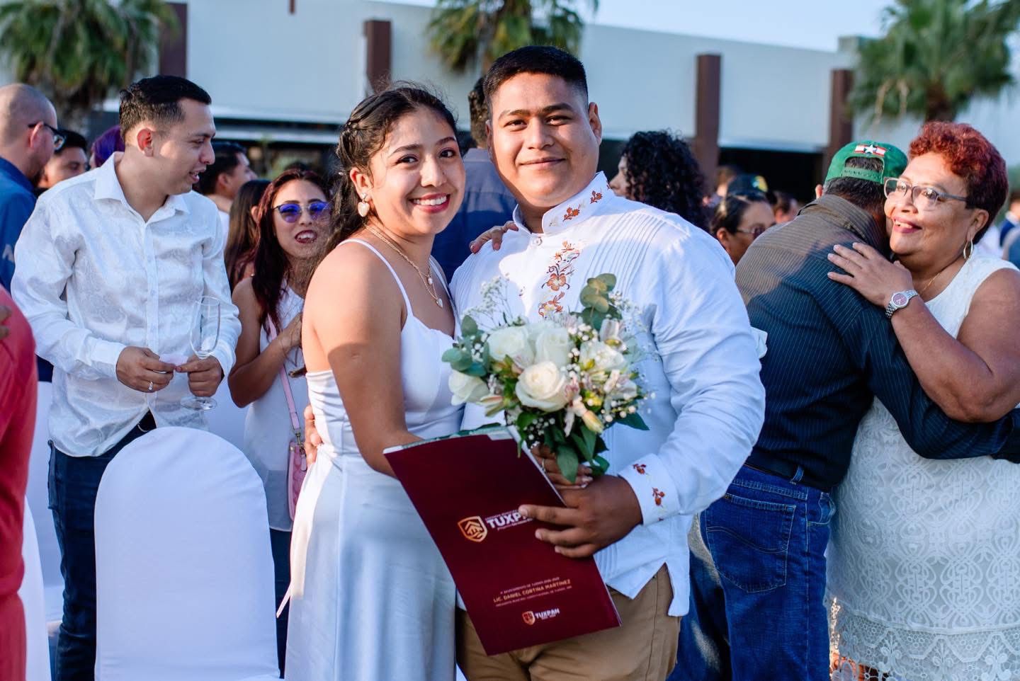 La recepción se realizó en el jardín del Hotel Holiday Inn Tuxpan Convention Center, espacio donde las parejas, acompañadas de sus familiares, vivieron este momento significativo.