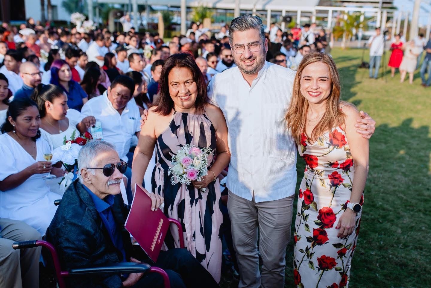 La recepción se realizó en el jardín del Hotel Holiday Inn Tuxpan Convention Center, espacio donde las parejas, acompañadas de sus familiares, vivieron este momento significativo.
