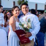 El alcalde Daniel Cortina Martínez y la presidenta del DIF Municipal, Marisol Martínez Barrios, encabezaron la ceremonia acompañados de los ediles de la actual administración e invitados especiales, quienes fueron testigos de este acto que brinda seguridad legal y consolida derechos y obligaciones para las parejas tuxpeñas.