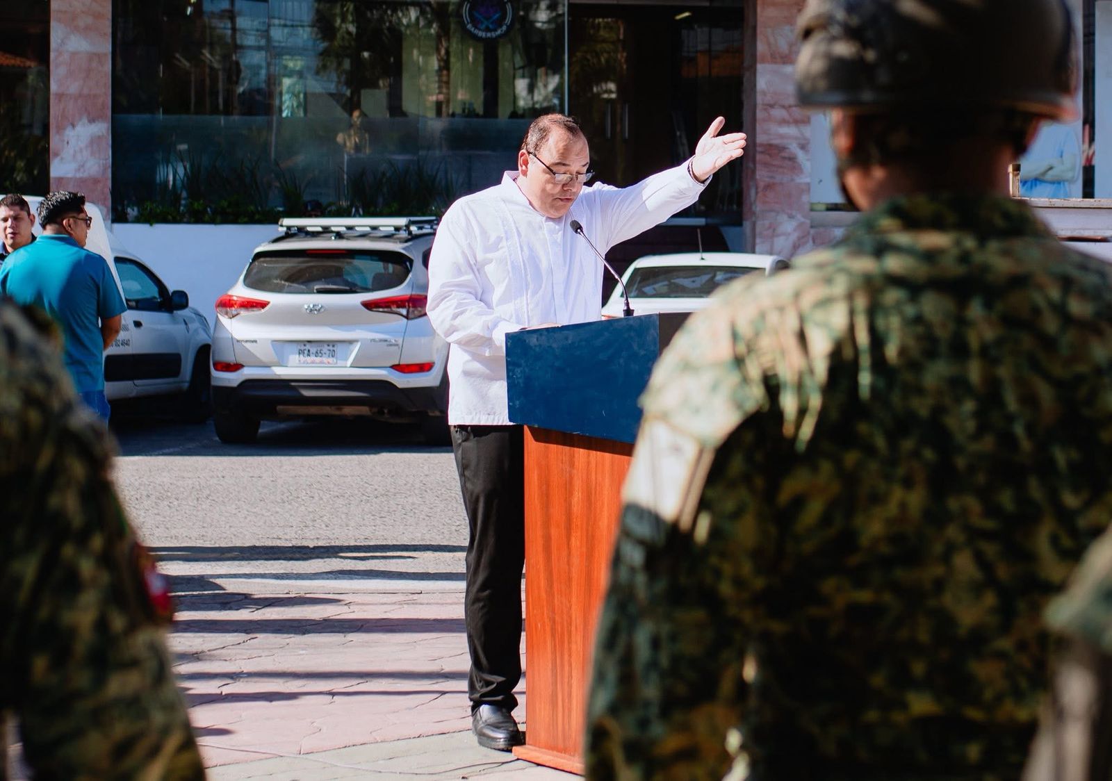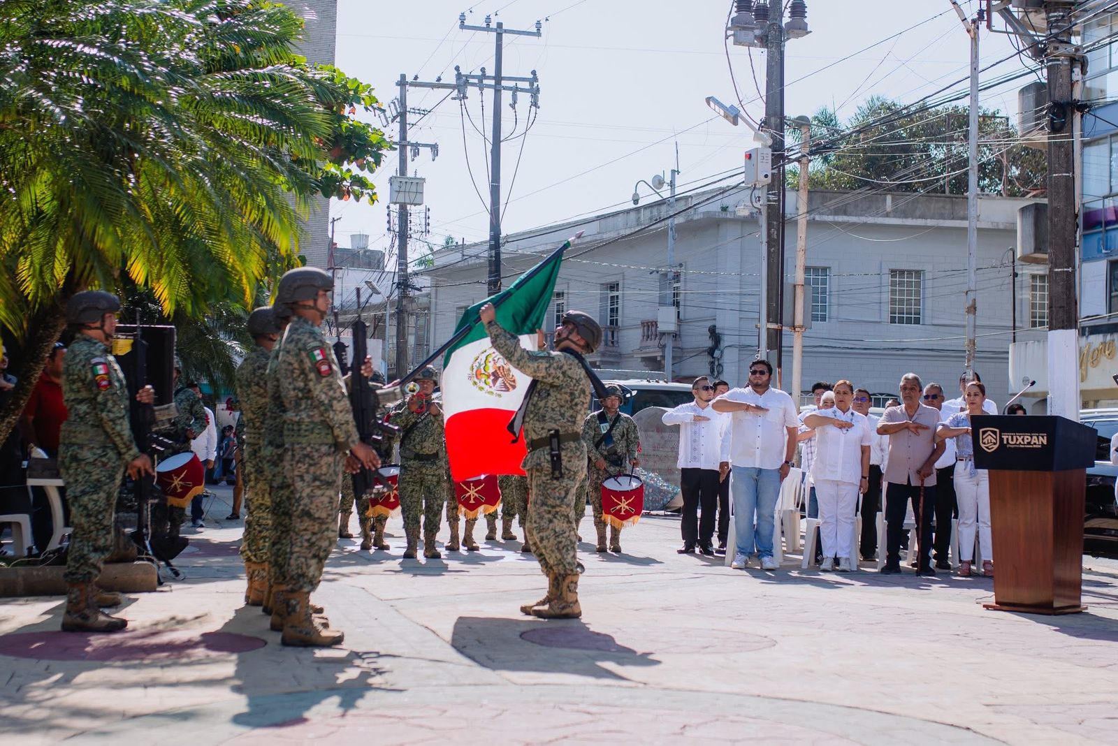 Como parte del protocolo, integrantes del presídium montaron guardia de honor en memoria de Benito Juárez, acompañados por representantes de las fuerzas armadas, entre ellos el General de Brigada Diplomado de Estado Mayor Jorge Antonio Maldonado Guevara, Comandante de la Décima Novena Zona Militar; representantes de la Fuerza Naval del Golfo y del Sector Naval en Tuxpan, así como autoridades educativas y miembros del Cabildo.