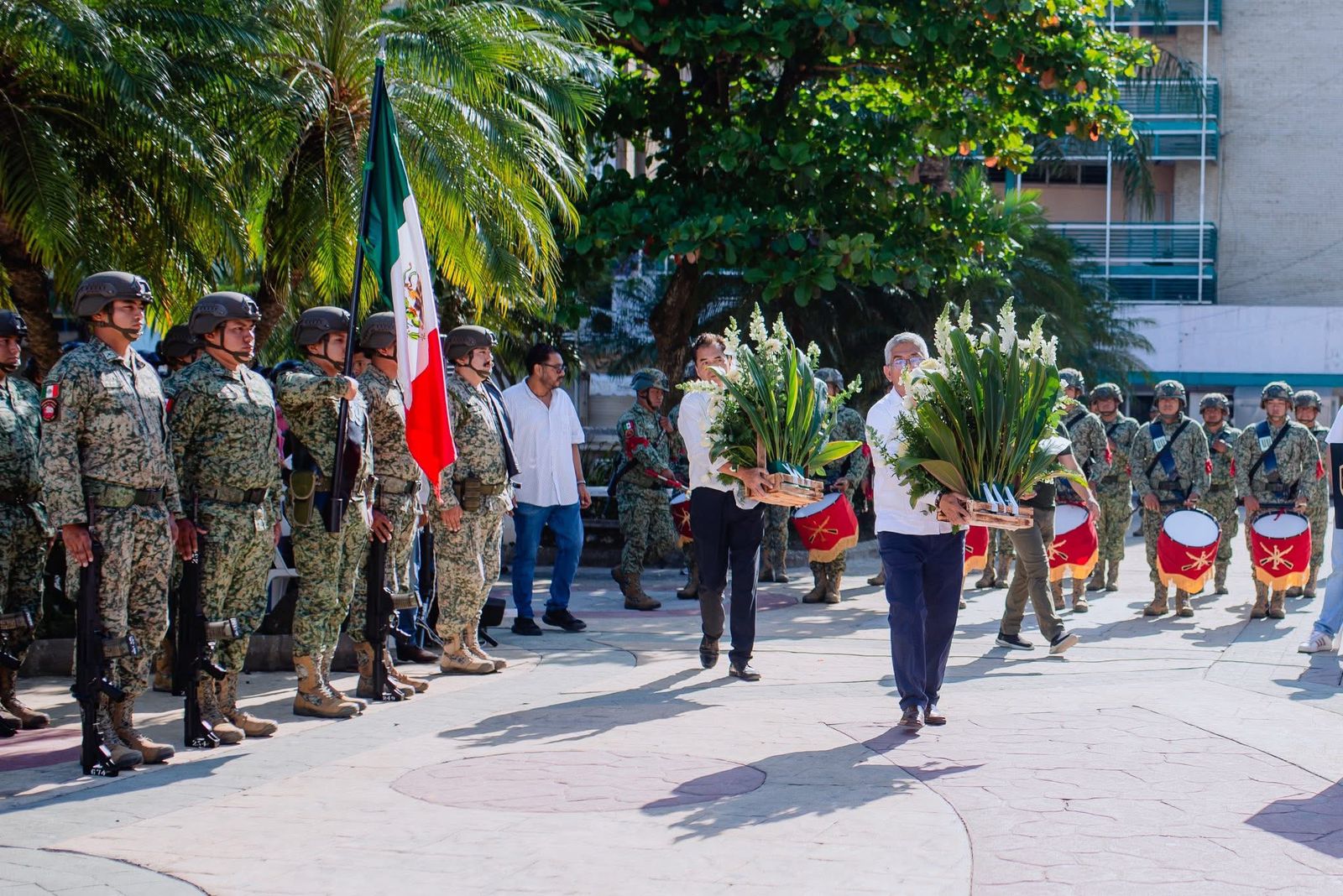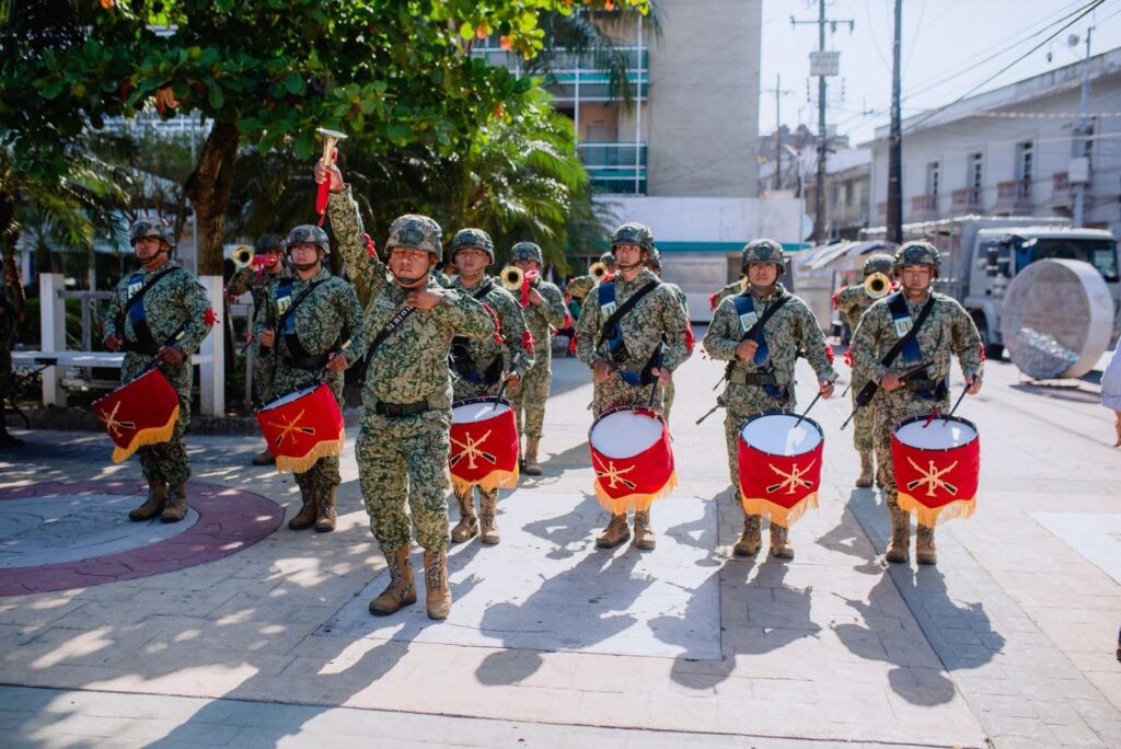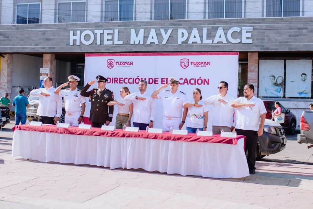 La ceremonia fue presidida por el alcalde Daniel Cortina Martínez, acompañado por la presidenta del Sistema DIF Municipal, Marisol Martínez Barrios, así como por autoridades militares, navales y educativas, quienes se sumaron a este significativo homenaje.