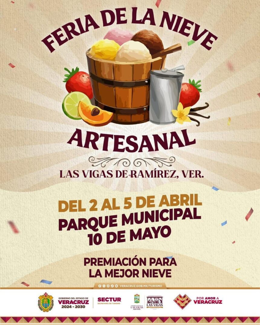 Xalapa, Ver., martes 31 de marzo de 2026.– En esta Semana Santa, la Secretaría de Turismo (SECTUR) invita a disfrutar de la Feria de la Nieve Artesanal, del 02 al 05 de abril, en el Parque Municipal 10 de Mayo, del municipio de Las Vigas, una atractiva opción en la región Cultura y Aventura.